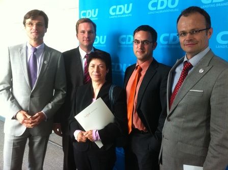 Foto: Sven Petke MdL, Steeven Bretz MdL, Beate Blechinger MdL, Prof. Anders Levermann und Prof. Dr. Michael Schierack MdL (v.l.)
