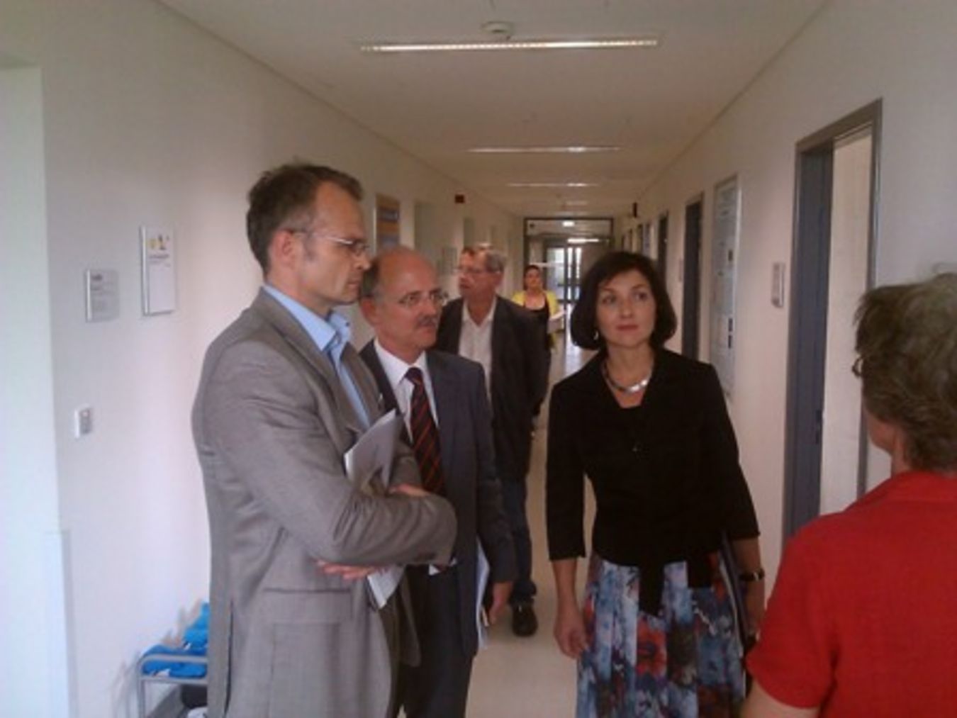 Der Landtagsabgeordnete Prof. Dr. Michael Schierack, der Hochschulpräsident Prof. Dr. Günter H. Schulz, Prof. Dr. Ursula Anderer, Prof. Dr. Dr. h.c. Otto Pulz und die Parlamentarische Staatssekretärin Katherina Reiche trafen sich am 23. August an der Hochschule Lausitz zu einem Gespräch zum Stand der Algenforschung.