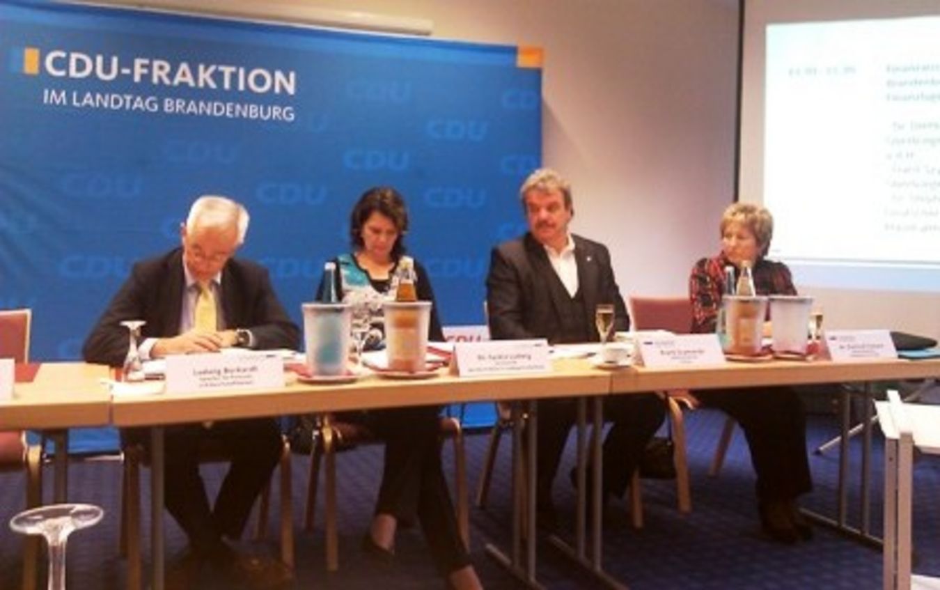 Oben: Der Cottbuser Oberbürgermeister Frank Szymanski (2. v. r.) neben der CDU-Fraktionsvorsitzenden Dr. Saskia Ludwig (2. v. l.) und der Oberbürgermeisterin von Brandenburg/Havel Dr. Dietlind Tiemann (1. v. r.) auf der Klausurtagung der CDU-Fraktion.