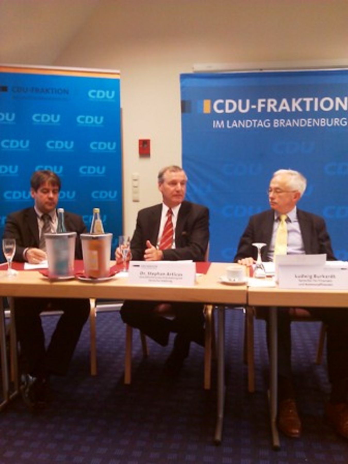 Zur Beratung standen u.a. die Anträge der Fraktion zum geplanten Haushalt, die Arbeit der Enquetekommission "Kommunal- und Landesverwaltung" und die weitere inhaltliche Ausrichtung. Darüber hinaus wurden die Ergebnisse einer landesweiten Umfrage zu Einstellungen und Erwartungen der Brandenburger (September 2011) vorgestellt. Zu Gast auf Einladung der Fraktion waren: Joachim Koschnicke, Geschäftsführer der forsa Gesellschaft für Sozialforschung und statistische Analysen mbH, zur Auswertung der Bevölkerungsumfrage; Claus Friedrich Holtmann, Geschäftsführender Präsident des Ostdeutschen Sparkassenverbandes zum Expertengespräch "Wertung aktueller Entwicklungen auf dem Finanzmarkt"; sowie zum Thema Finanzausstattung der Kommunen in Brandenburg mit Schwerpunkt auf die aktuelle Finanzlage der kreisfreien Städte, die Oberbürgermeister von Brandenburg/Havel und Cottbus, Dr. Dietlind Tiemann und Frank Szymanski, sowie Dr. Stephan Articus, Geschäftsführendes Präsidialmitglied des Deutschen Städtetages.