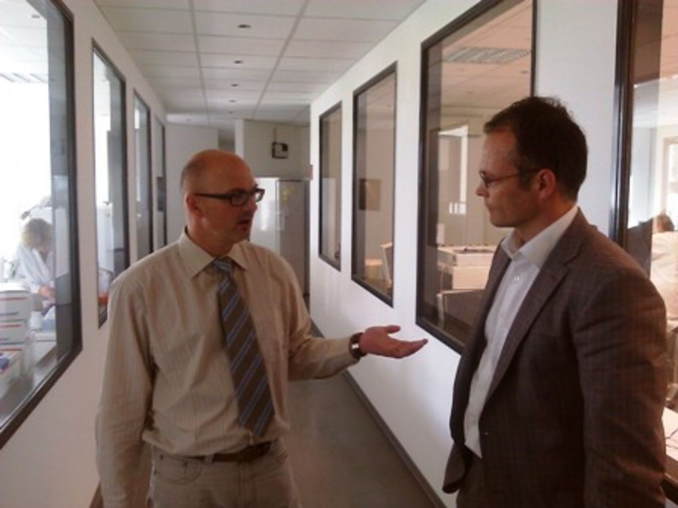Foto 1: Michael Schierack im Gespräch mit dem Geschäftsführer Dr. Roggenbuck. (v.r.)
