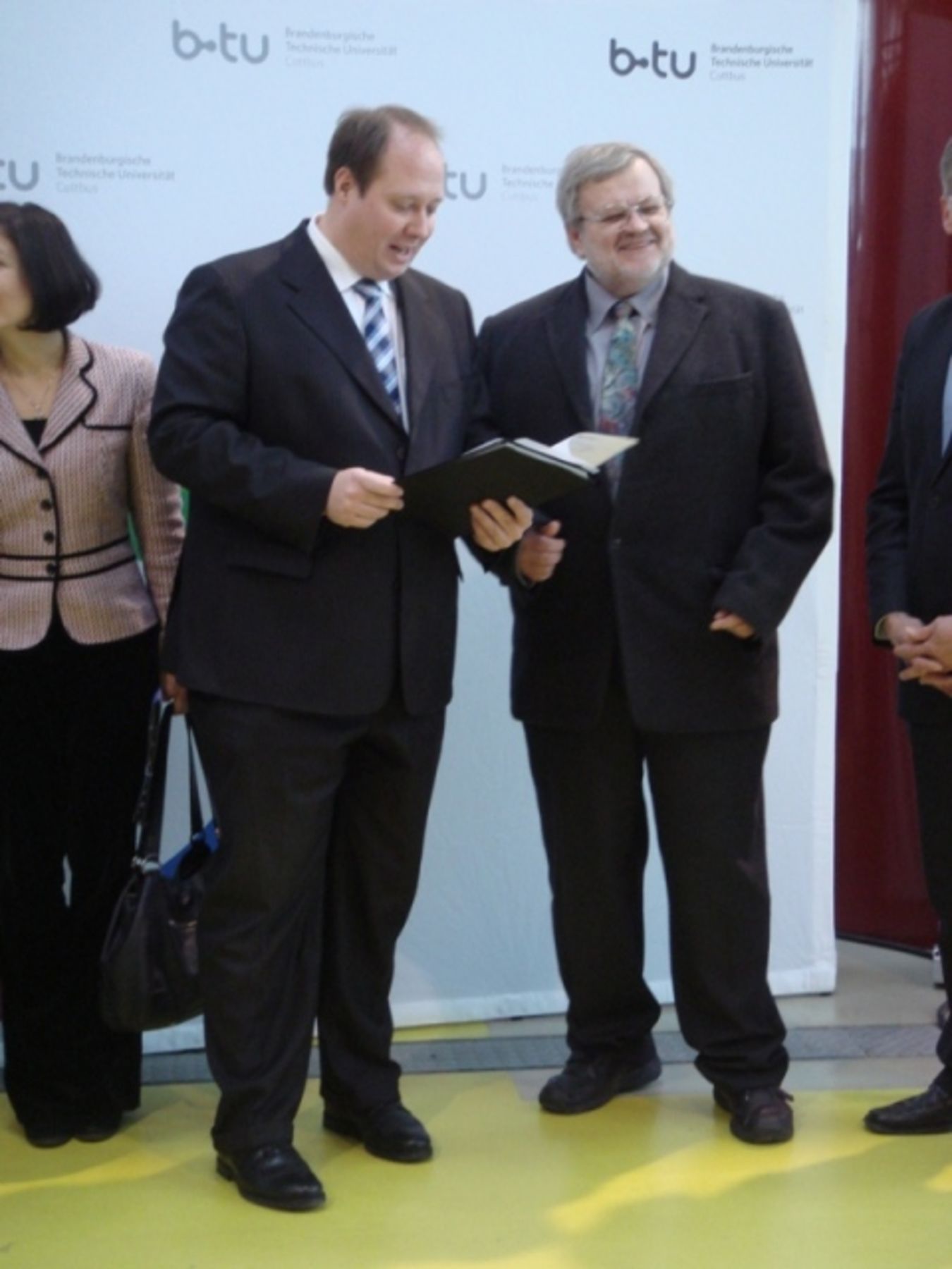 Begrüßt wurden die Parlamentarischen Staatssekretäre durch den Vizepräsidenten der BTU Cottbus, Herrn Prof. Dr. Dieter Schmeißer.